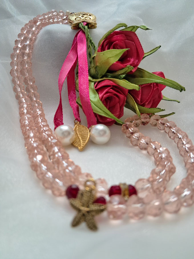 دارای ۹۹ مهره شیشهای صورتی شفاف که با درخشندگی ملایم خود حس آرامش را منتقل میکنند.