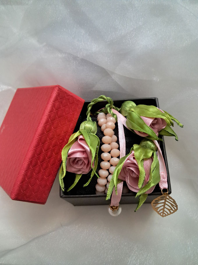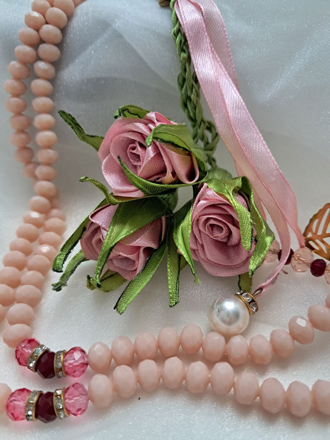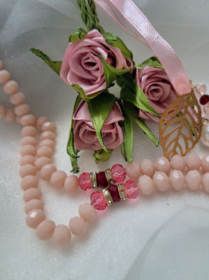 تسبیح کالباسی با رز های صورتی روباندوزی شده